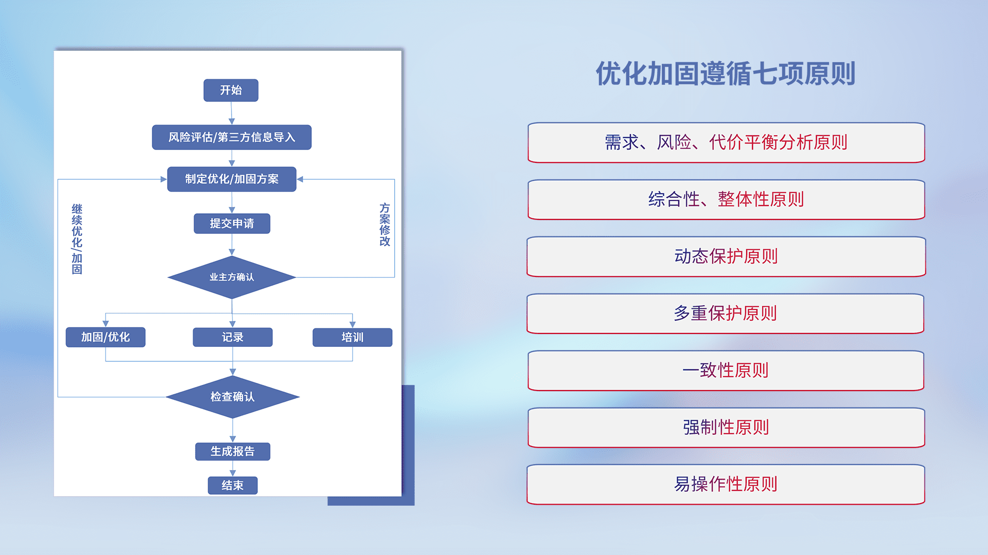 最大程度利用现有资产,,,,对评估发现的问题进行封堵与整改,,,,防止漏洞被利用,,提升整体网络安全性,,,为客户带来高标准的优化加固服务。。。